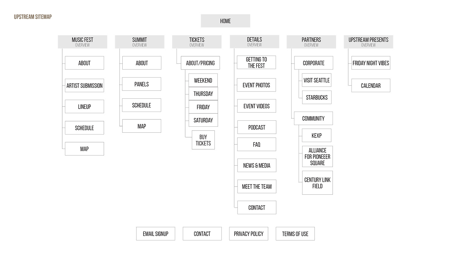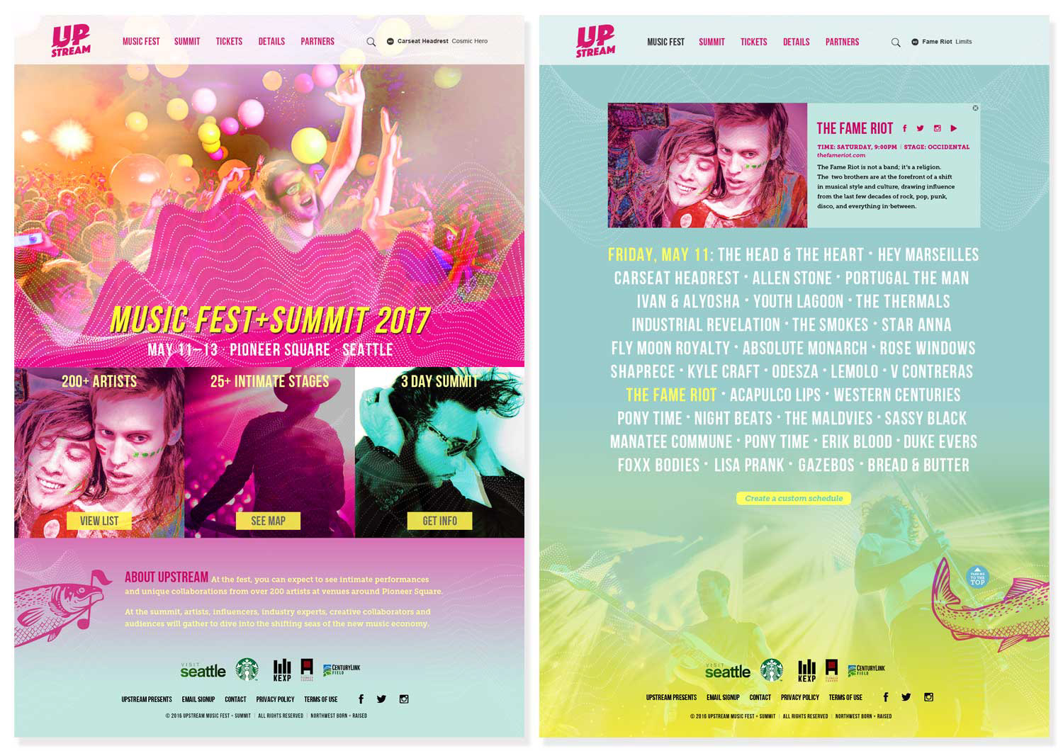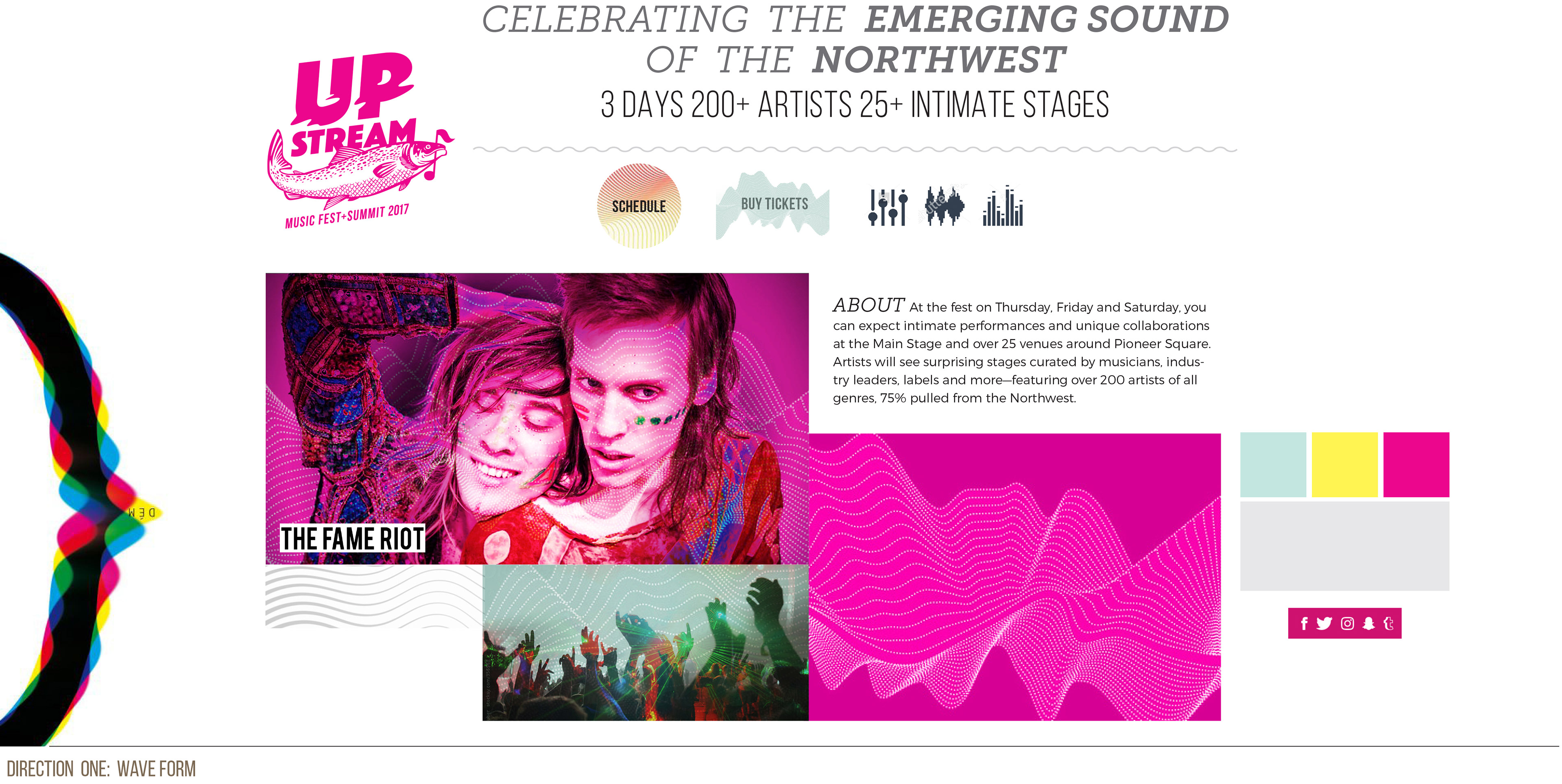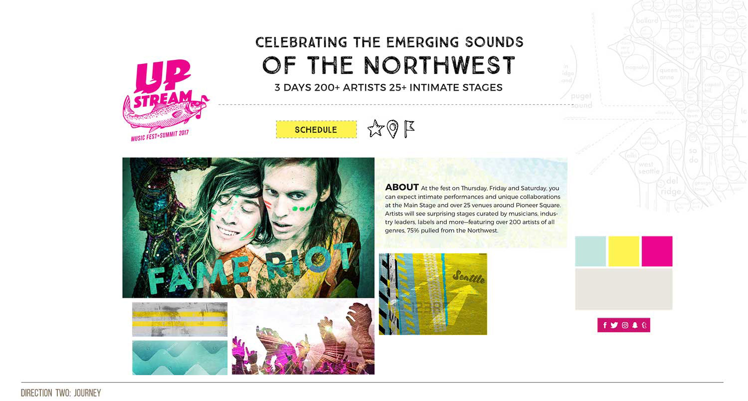 Upstream provided a comprehensive brand guide and creative brief. Their mission statement focused on emerging artists and the new music economy. The final solution needed to help the festival stand out among its competitors. And it needed to help create a sense of belonging and excitement about the music for the audience.